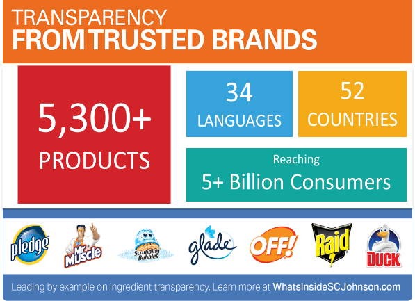 “We know consumers today are more interested than ever in the products they bring into their homes,” said Fisk Johnson, Chairman and CEO of SC Johnson. “What matters most is the trust consumers place in our company and that they count on our products to be effective and safe. We believe it’s our responsibility to give people the facts so they can make informed choices, and we hope other companies will join us.”