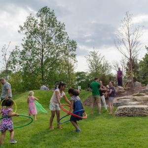 - Getting a Bird’s Eye View: Atop a Canopy Walk, 13 feet in the air, children can locate Ohio’s state amphibian, the spotted salamander, in the garden below. They can also pretend to be a cardinal in the human-sized bird nest or take in the sights and sounds of nature from the hammock perched high up in the treetops.