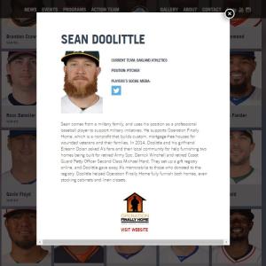 In 2014, Doolittle and Dolan asked A’s fans and their local community for help furnish homes that were being built for retired Army Spc. Derrick Winchell and retired Coast Guard Petty Officer Second Glass Michael Hard. They set up a gift registry online, and Doolittle gave away A’s memorabilia to those who donated to the registry. Doolittle helped Operation Finally Home fully furnish both homes, even stocking cabinets and linen closets.