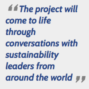 Here's an interview with Dominique Conseil , Global President of Aveda and Karl-Henrik Robert founder of the Natural Step, both sustainability leaders. Or listen to The Regeneration Project's Ray Anderson Memorial video series, here is one video, Why Meaningful Progress Depends on Activists - Spotlight on Civil Society, featuring sustainability leaders Jonathon Porritt, Vandana Shiva, Nitin Desai, Lester Brown, Bill Ford, Kris Gopaladrishman, Yolanda Kakabadse and Gro Harlem Brundtland.