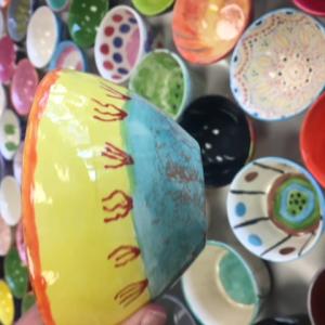 With help from local studio A Way with Clay, the local conference room was turned into a ceramics studio. The room was set-up with boxes of bowls, an array of paints and brushes and worktables. Throughout the day, employees stopped by to decorate the bowls. When the bowls were all painted, A Way with Clay picked up the results and fired them in their kiln.