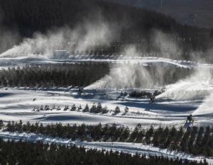 To make the snow, water – which comes mainly from rainfall and surface run-off – is pumped from nearby reservoirs and water plants. At the end of the season, snow melt is captured so that it can be reused for snow-making, irrigation and other uses.