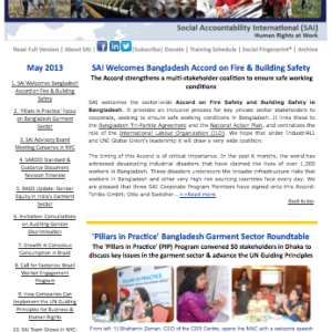 SAI Welcomes the Accord on Fire & Building Safety in Bangladesh