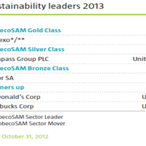 Sodexo’s commitment to sustainability has been recognized for efforts and results in social, environmental and economic performance at the World Economic Forum 2013 in Davos with three awards: Sector Leader 2013, Gold Class 2013, and Sector Mover 2013.