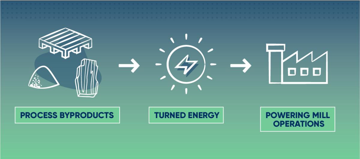 Shawn's zeal for recycling and his aptitude for efficiency linked to solve this challenge. He started meticulously monitoring, adding an app system that tracks the whereabouts of waste throughout the facility and helps tally reports on the portion of waste that leaves it. He and his team started to implement new processes, from efforts as large as reusing tree bark as energy to power the mill to as small as positioning recycling and composting bins throughout the mill.
