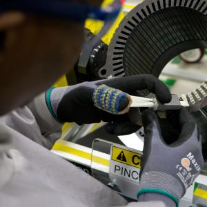 After refining its expertise in electric motors at a pilot facility in Wixom, Mich., production of electric motors began at White Marsh. Workers at the Baltimore plant completed extensive training on the operation of the sophisticated machines used to configure portions of the electric motor and drive units.