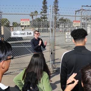 The daylong tour included a stop at the Chestnut substation, where SCE’s Ryland Watts, an operations engineer, explained the intricacies of electrical equipment, how circuits work and how transformers reduce high voltage to lower levels to distribute electricity to customers’ homes.