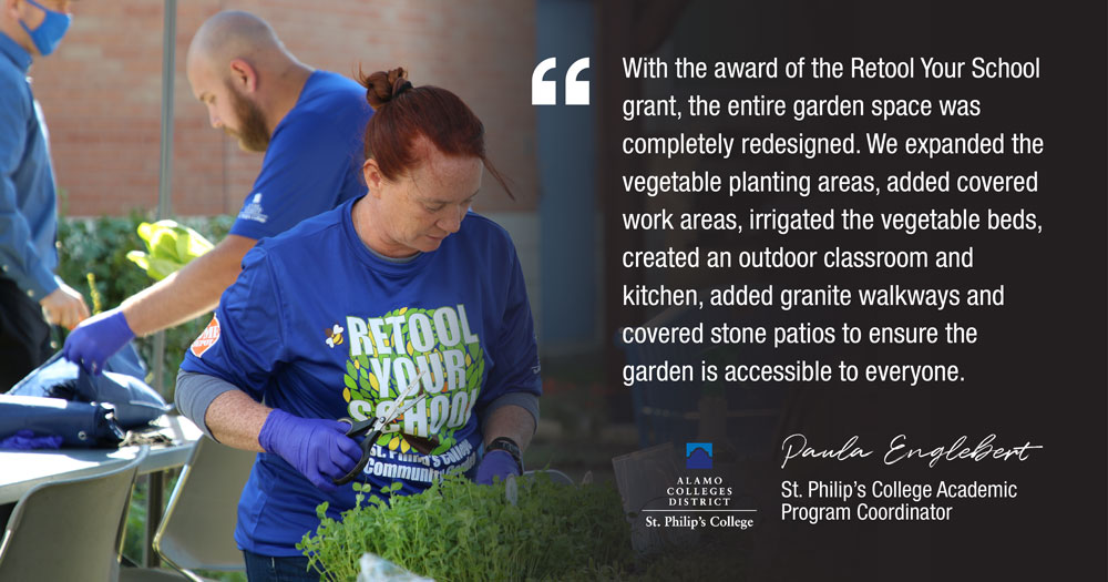 “We were ecstatic to win,” says Paula. “St. Philip’s College has competed for a grant in the past, but 2021 marks the first time we were awarded. We had over 75 volunteers participate, putting in 700 hours of work.”