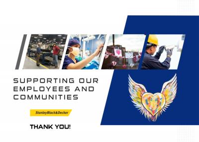 Stanley Black & Decker provides critical support for those who keep the world’s critical infrastructure running. The company’s tools and storage units, engineered fasteners and security solutions are used by the essential health care, first responder, construction, maintenance, transportation, government and medical manufacturing workers. Our COVID-19 Community Response Task Force is already working with universities, hospitals, manufacturers and other partners around the globe to apply its innovation and expertise to tackle today’s challenges. Ongoing projects include 3D face shield printing, innovations in mask technology, and fasteners and battery technology for medical products such as respirators. In addition, we have seen a groundswell of individual employees reaching out to do their part, contributing and engaging with their local communities to serve immediate needs.