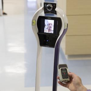 Remote controlled through a laptop, iPad or iPhone, VGo robots allow a patient or a doctor to navigate and interact with people in a different location. VGo is uniquely integrated with a camera, microphones and a video display – all on a light-weight, motorized and stylish platform. VGo robots are optimized at 4 feet tall so they work equally well when interacting with people who are sitting or standing.