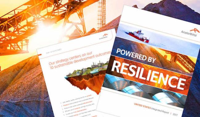 ArcelorMittal USA is excited to announce the publication of its annual 2017 United States Integrated Report, “Powered by Resilience.” Since 2009, ArcelorMittal has reported on its corporate responsibility and sustainability initiatives in the United States. This third publication of an integrated report continues the company’s dedication to transparency and directly connects ArcelorMittal’s 10 sustainable development outcomes to its business outcomes and financial drivers.