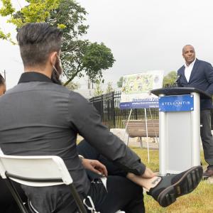 Detroit’s Greenest Initiative was announced during the groundbreaking for a new neighborhood education pavilion, located at the stormwater park on the corner of Kercheval Avenue and Beniteau Street. Construction of the pavilion, which will be the first of its kind in Detroit, is expected to begin in fall 2021. In addition to the pavilion, Stellantis plans to install environmental educational signage, bike racks, a bat house, beehives, pollinator garden and rain garden, as well as work with local educators to develop an environmental-focused curriculum.