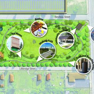 - Upgraded park landscaping to beautify the area, including native trees, a walking path and benches for sitting - completed in 2020