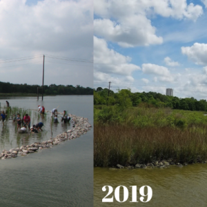Because wetlands are so important, the Galveston Bay Foundation works to ensure that Galveston Bay wetlands are healthy and resilient. We started restoring wetlands in the early 1990s to abate the loss of many tens of thousands of acres of wetlands that had occurred around Galveston Bay since the 1950s. Our wetlands restoration work began as grass roots (no pun intended) efforts, mostly involving local volunteers transplanting stems of native smooth cordgrass along shorelines.