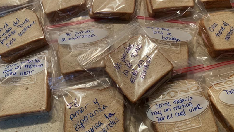 To make sure they knew this, Cardona and her colleagues wrote inspiring messages on sandwich bags, so that when they handed out snacks to hungry volunteers and displaced citizens alike, they’d get an extra dose of kindness.