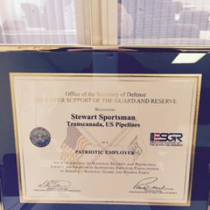 The nomination resulted in TransCanada earning one of 75 Patriot Awards given out in the state of Ohio. The Patriot Award reflects the efforts made to support Citizen Warriors through a wide-range of measures including flexible schedules, time off prior to and after deployment, caring for families and granting leaves of absence if needed. The award was recently presented to Sportsman, publically recognizing him for the outstanding support and cooperation to employees who are serving in the military.