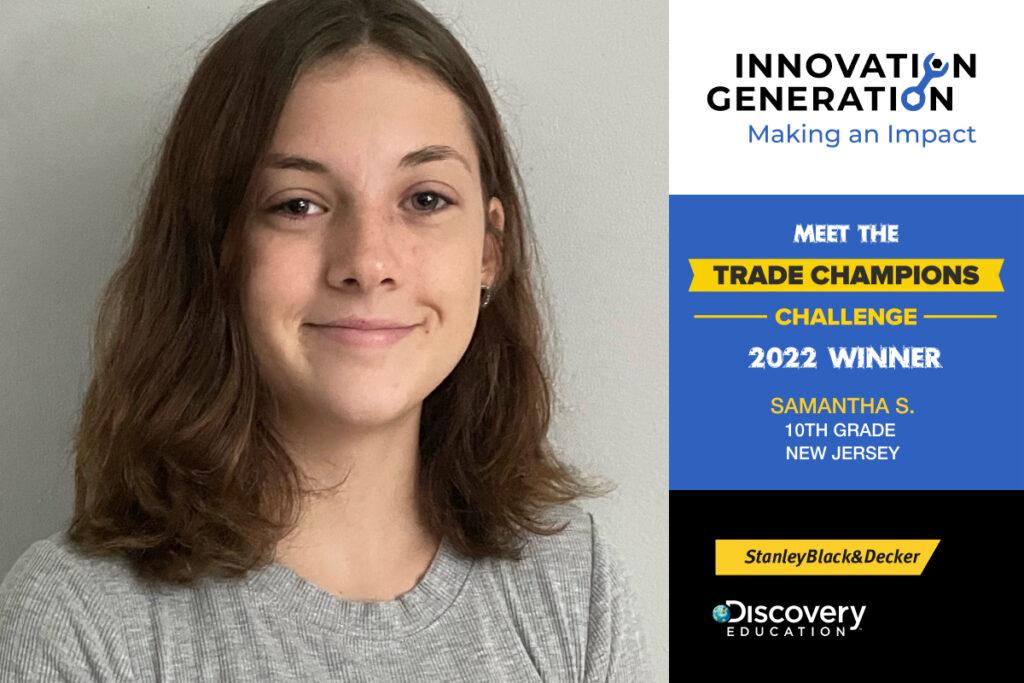 SILVER SPRING, Md., August 22, 2022 /3BL Media/ - Stanley Black & Decker and Discovery Education today recognized a New Jersey student as the winner of the 2022 Trade Champions Challenge. The Challenge asks high school students to work to create a 30-60 second video submission, directed at their peers, about why they aspire to be a trade professional and/or why they are passionate about the trade career in which they are currently engaged.