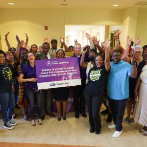 Employees from Subaru of America headquarters surprised Camden City School District faculty with the announcement at a volunteer day to help teachers set up their classrooms. More than 100 Subaru volunteers traveled to schools throughout the district to help set up and clean classrooms, decorate bulletin boards, and more in preparation for the first day of school.
