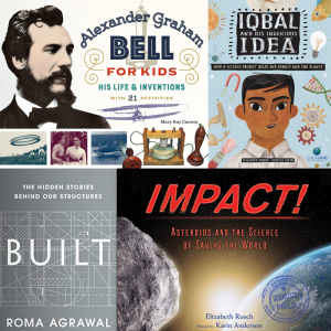 This exploration of the life of telephone inventor Alexander Graham Bell is no ordinary biography. Mary Kay Carson highlights Bell’s contributions beyond his most famous invention. Bell’s creation of an early version of the phonograph and the metal detector, his research on airplanes and hydrofoil boats, and his work teaching deaf and hearing-impaired students, including Helen Keller, are all examined. The book includes sidebars that explain the scientific principles behind his inventions and 21 hands-on activities related to Bell’s life and work. Readers can learn how to communicate with American Sign Language, create a telegraph out of a pie tin, fly a tetrahedral kite and more.