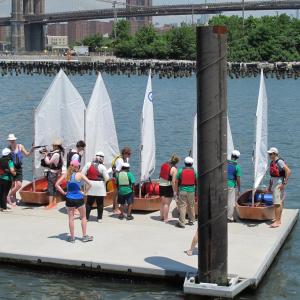 Sixty students in five programs in Brooklyn and Queens participated in the program. With no prior woodworking experience, each cohort worked together weekly to turn four sheets of plywood into a beautiful sea-worthy boat. Throughout the school-year students learned tool safety, how to read design plans, how to build boat models, sawing, drilling and gluing. All the work culminated on June 10th, when after months of learning, BBW middle school students launched and sailed their Optimist prams, 7’ 6” wooden sailboats in NY Harbor for the first time during their annual Spring Launch celebration.