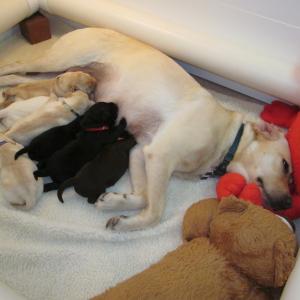 These seven puppies were born on June 12 to SSD Midge and Elton, a black Labrador retriever from the Guide Dog Foundation for the Blind.