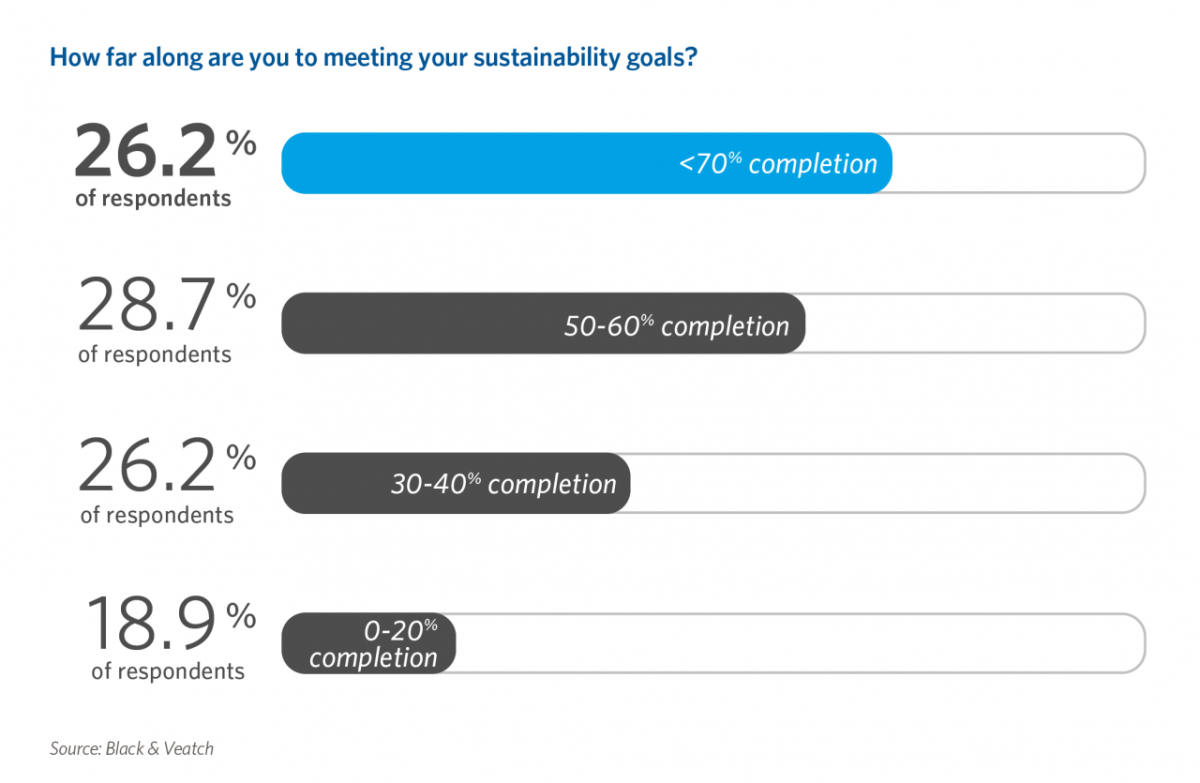 In fact, consumer purchasing decisions, often related to a growing willingness to pay premiums for “sustainable products” or B2B procurement requirements for vendors to demonstrate sustainability efforts or alignment with the SDGs, are forcing companies to evaluate whether their business processes are in line with broader societal forces. There remain significant opportunities to increase corporate efforts as respondents indicated only one-quarter have achieved more than 70 percent of their sustainability goals.