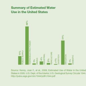 A macro study on the effects of global warming on water supply and demand in the contiguous United States points out that the three categories of water use with the greatest demand are agricultural use, power plant cooling, and public supply. In the United States, industrial water use makes up 4 percent of total water withdrawals (see adjacent chart). Thermoelectric power (49 percent), irrigation (31 percent) and public supply (11 percent) make up a total of 91 percent of the water withdrawals in the US.