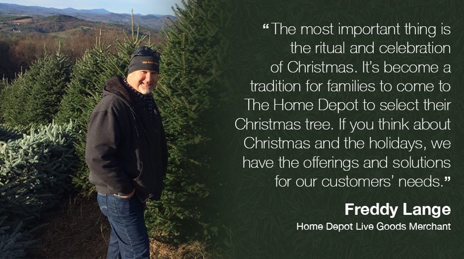 The most important thing is the ritual and celebration of Christmas. It’s become a tradition for families to come to The Home Depot to select their Christmas tree. If you think about Christmas and the holidays, we have the offerings and solutions for our customers’ needs.”