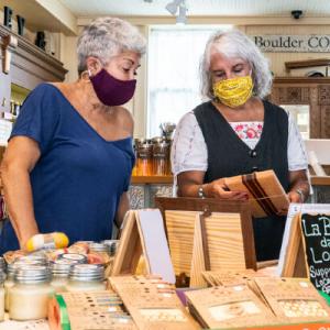 “It gives me so much joy to talk about how important bees are and what they provide,” she says. “It has started a whole community dialogue. The shop is really built around this observation hive.”