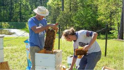 Honeybees provide pollinator services to North Carolina’s $78 billion agricultural economy. It is not just in North Carolina that honeybees are important – according to Greenpeace, up to one-third of all food produced globally is pollinator-dependent. Despite the important role that honeybees play in our lives and food systems, bee populations are increasingly at risk. Wild honeybee populations are threatened by insecticide use, parasites, and monoculture farming. Also, according to Greenpeace, the number of bee colonies per hectare in the U.S. has declined by 90 percent since 1962.