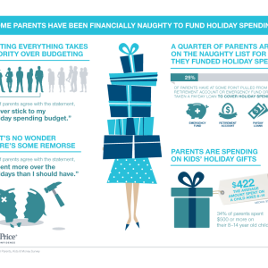 November 2, 2016 /3BL Media/ - T. Rowe Price’s Parents, Kids & Money Survey, which sampled more than 1,000 parents and their 8 to 14 year old kids in February 2016, revealed that many parents are willing to overextend their finances to fulfill their kids’ holiday wish lists. And 25% of parents have either taken from their 401(k)s or their emergency funds or taken a payday loan to cover holiday spending.