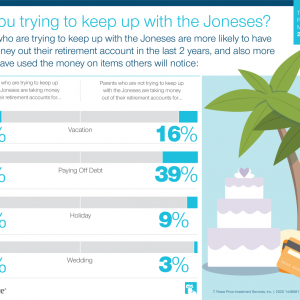 - More likely to pull from retirement and college savings: Those who try to keep up with the Joneses were three times more likely to have taken money from their retirement savings at least twice during the past two years. They are also five times as likely to have taken money out of their college savings for noneducational purposes at least twice in the past two years.