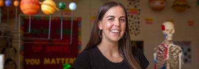 Solar systems, skeletons and stacks of supplies line the walls in Nancy Bullard’s classroom. Bullard – better known as Mrs. B – is the science lab teacher at Huntingtowne Farms Elementary School in Charlotte, North Carolina. Every student from kindergarten through fifth grade comes to her class at least once a week for hands-on science lessons.