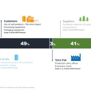 - Partnering with suppliers and other stakeholders along the value chain to significantly reduce carbon footprint. Tetra Pak is working with suppliers to cut upstream carbon emissions, including setting ambitious renewable energy targets and increasing the use of renewable and recycled materials, which are critical to make a low carbon circular economy possible.