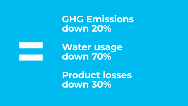 The combination of UHT 2.0 with OneStep technology and Tetra Pak® E3/Speed Hyper scores highly across industry benchmarks for sustainability, with a 0.8 GHG Index score, a 0.3 Water Index score and a Product Losses Index score of 0.72. When compared to a conventional line solution3 this optimal integrated solution reduces GHG emissions by 20%, water usage by 70% and product losses by 30%.