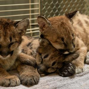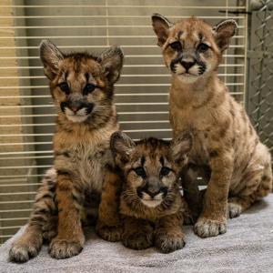 While Captain Cal was recovering, the Oakland Zoo took in two more mountain lion cubs that were rescued by California Fish and Wildlife services. The two females lost their mom and needed medical care. The Oakland Zoo introduced them to Captain Cal to help make the recovery process easier with compatible company.