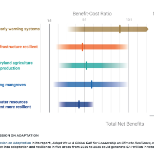 However, according to the Global Commission on Adaptation (GCA), adaptation finances continue to fall drastically short of the required global financing of $180 billion annually for 2020-2030. The GCA has estimated that investing $1.8 trillion into adaptation and resilience measures globally in five areas from 2020 to 2030 could generate $7.1 trillion in total net benefits.