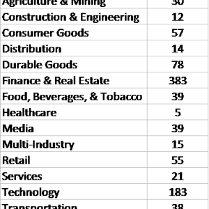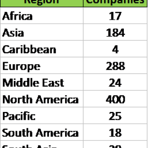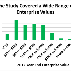 Both companies have used consistent methods to evaluate companies over the period studied—2008 through 2012. 1,094 of the companies tracked by Brand Finance in its most recent report are also tracked by CSRHub. As a result, we have been able to compare brand value and sustainability performance across 97 industries in 16 industry groups (see table) and 54 countries in 10 regions (see map and table). While the study has a bias towards larger companies and those that are publicly traded, we have been able to include at least some smaller companies in our data set (see chart).