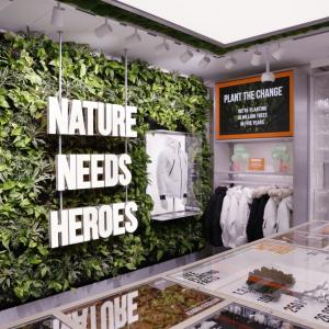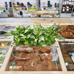Timberland’s new purpose-led store environment immerses visitors in the brand’s Creative Vision, which combines Timberland’s longstanding passion for nature with the energy of fashion to create something truly distinctive in the marketplace. Within the store, the brand’s latest footwear and apparel collections sit amidst living trees, a full-height living green wall, and powerful stories of eco-innovation that shine a spotlight on Timberland’s commitment to a greener future.