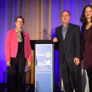 The session came early in the conference agenda after welcoming remarks from Rotary International President Ian Riseley, a bilingual video greeting from Canadian Prime Minister, Justin Trudeau, and a plenary address from Dr. David Suzuki. As a Canadian academic, science broadcaster, and environmental activist, Dr. Suzuki powerfully communicated the urgent need to combat climate change. At the heart of his message was a call to shift our definition of economic progress from growth to true sustainability, which would attribute an economic value to clean air, safe water, open spaces, and other environmental elements needed to sustain life on the planet.