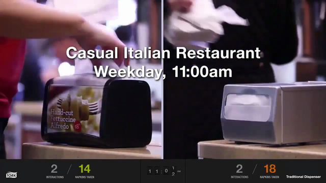 Tork Xpressnap® is North America’s best-selling line of napkin dispensing systems because it reduces napkin usage by at least 25%—Guaranteed!* That means fewer refills and lower labor costs. Better hygiene for customers.