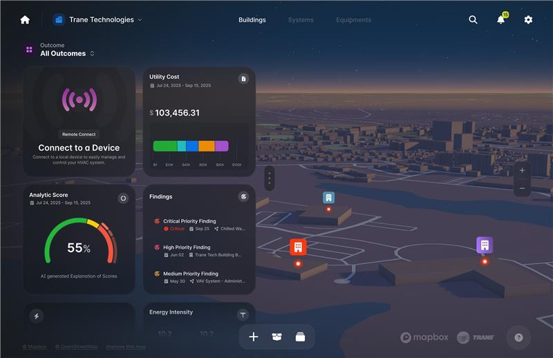 Trane Cloud is a secure, unified digital platform that brings together building data, analytics, applications, and services into one seamless experience, enabling operators, facility teams, and energy managers to run their buildings more efficiently and sustainably. By replacing fragmented systems with a single intelligent data foundation, Trane Cloud delivers portfolio level visibility, actionable insights, and prioritized recommendations that streamline operations, improve reliability, and reduce energy and operational costs.