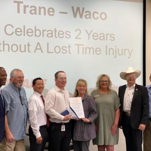 “Safety is so important, and we are delighted to recognize the entire Trane Waco team for their ongoing commitment to a safe workplace. Workforce, economic development and education coupled with elected leadership that ‘gets it’ is what allows us to succeed in the great state of Texas,” said Commissioner Demerson. “Business is booming, and the Trane Waco team is part of making that happen.”