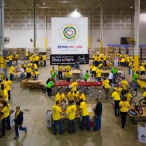 On the actual global volunteer day, we took over an empty warehouse at our U.S. headquarters and offered every single employee – office, manufacturing, logistics, executive – the chance to participate in a volunteer project, from building bikes to creating care packages to assembling disaster relief kits.