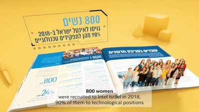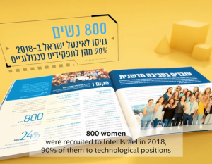 - 800 women were recruited to Intel Israel in 2018, 90% of them to technological roles.