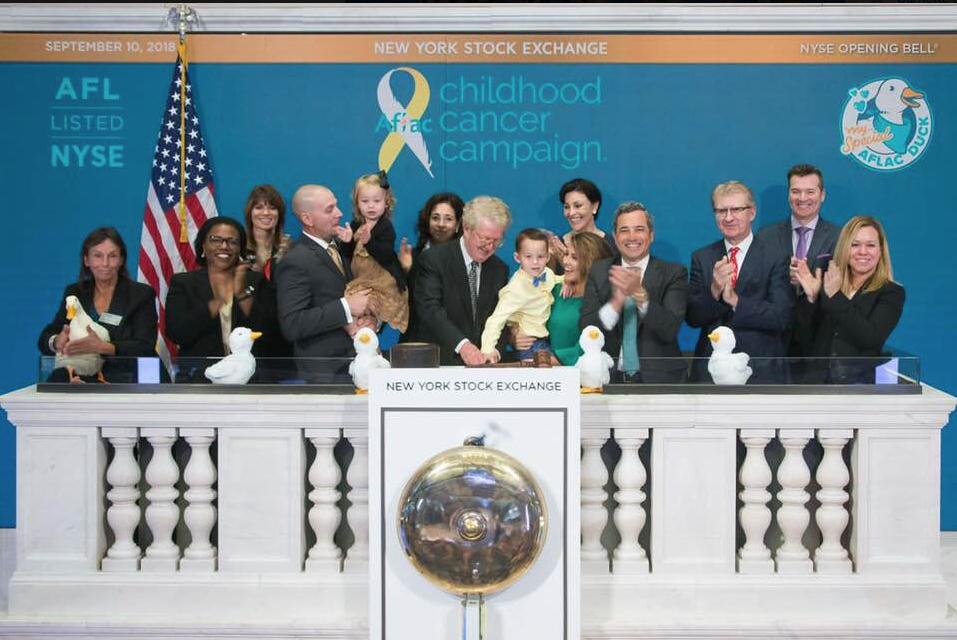 Earlier this month, two young patients from the Aflac Cancer & Blood Disorders Center at Children's Healthcare of Atlanta joined Aflac executives to ring the opening bell at the New York Stock Exchange in honor of Childhood Cancer Awareness Month.
