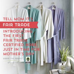 Since introducing Fair Trade standards for factory workers in February 2010, Fair Trade USA has worked with North American brands to bring Fair Trade Certified apparel and linens to store shelves, providing greater supply chain transparency and accountability. Fair Trade Certified apparel gives consumers, for the first time, greater knowledge and awareness about how their favorite items were produced, empowering them to vote with their dollars every time they shop. The robe launch coincides with Fair Trade USA’s Mother’s Day campaign, which promotes the many ways the Fair Trade benefits moms around the world.