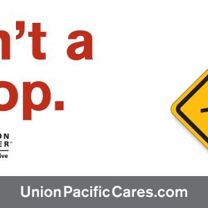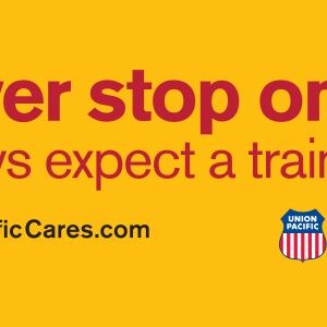 The billboards will raise awareness that a train could be using the railroad tracks at any time and to always approach them with caution. Union Pacific encourages drivers and pedestrians to follow all laws regarding grade crossings and railroad safety.