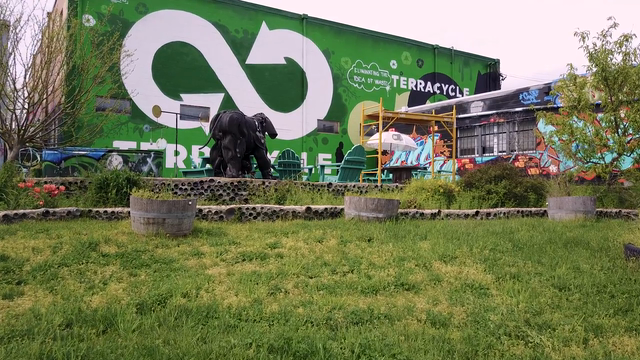 TerraCycle also helps businesses and municipalities solve recycling challenges, creating efficient solutions to collect and deconstruct large and small items that have typically been considered non-recyclable, like juice pouches and dental floss containers. These items are then transformed into new items such as playground equipment.