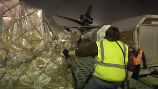 Goods transported so far include: high-energy biscuits, tents, water, personal hygiene kits, ready-to-eat meals, tarps, water purification systems, medical supplies, blankets, underwear and plastic containers to store water.
